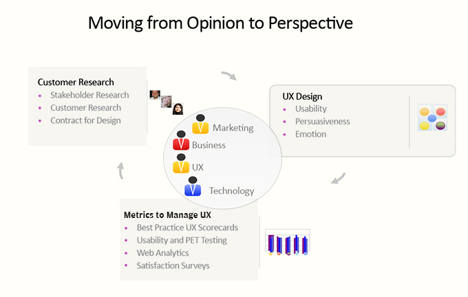 UX metrics on a project come from various sources and activities, UX reviews, UX testing, customer surveys, web analytics, etc. The challenge for an organization is to turn the outcome of all these evaluations into a mechanism with a two-fold agenda: