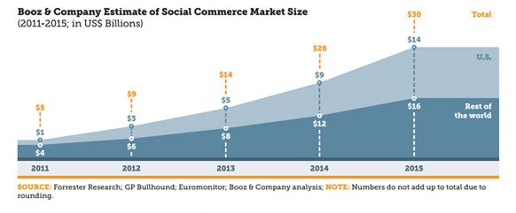 Exciting, tantalizing, and lucrative — social commerce is big now. Booz & Company predicts $15 billion in social commerce revenues by 2014. This is approximately 10% of what is expected to come from total ecommerce revenue.